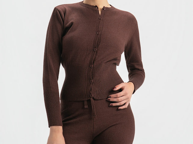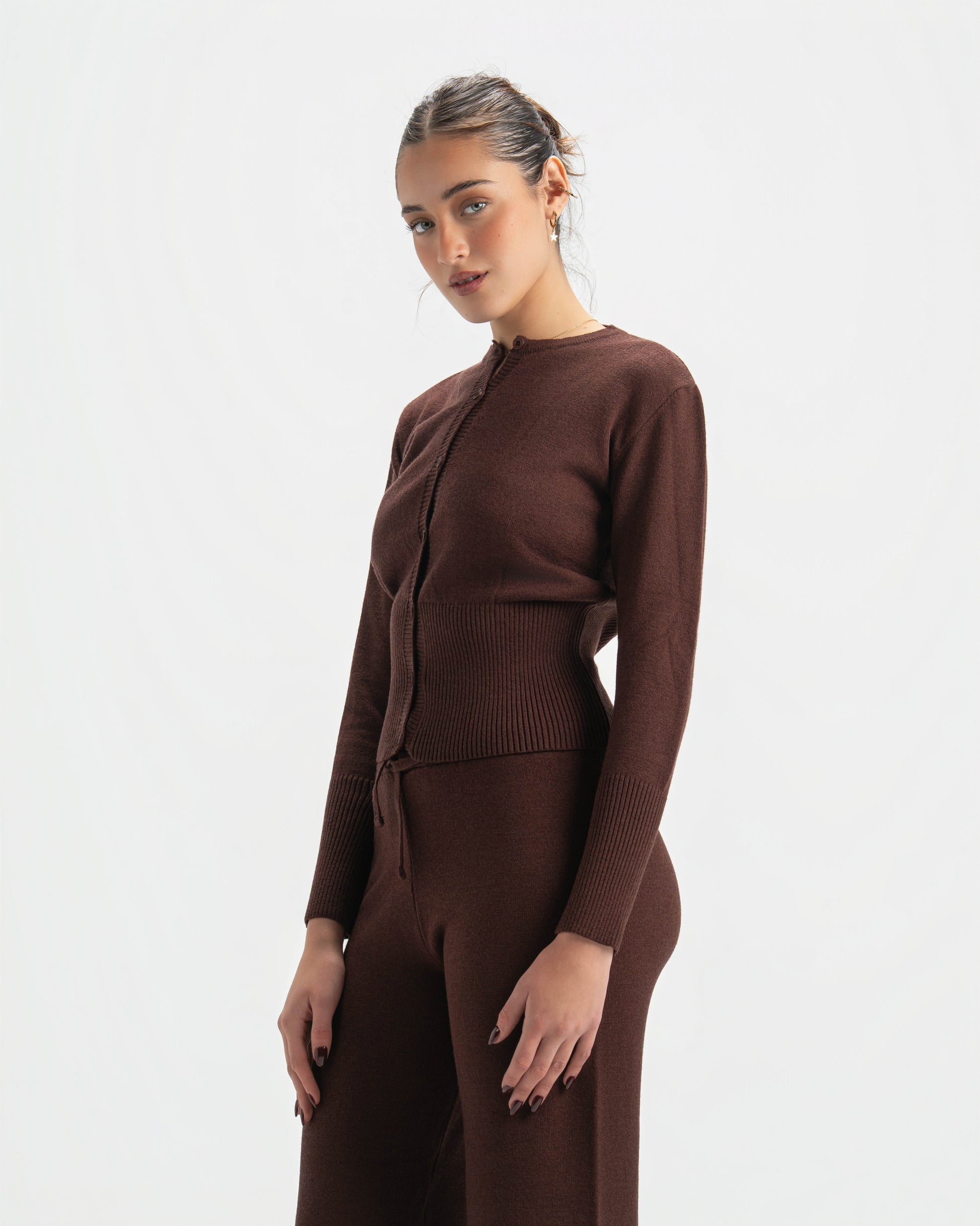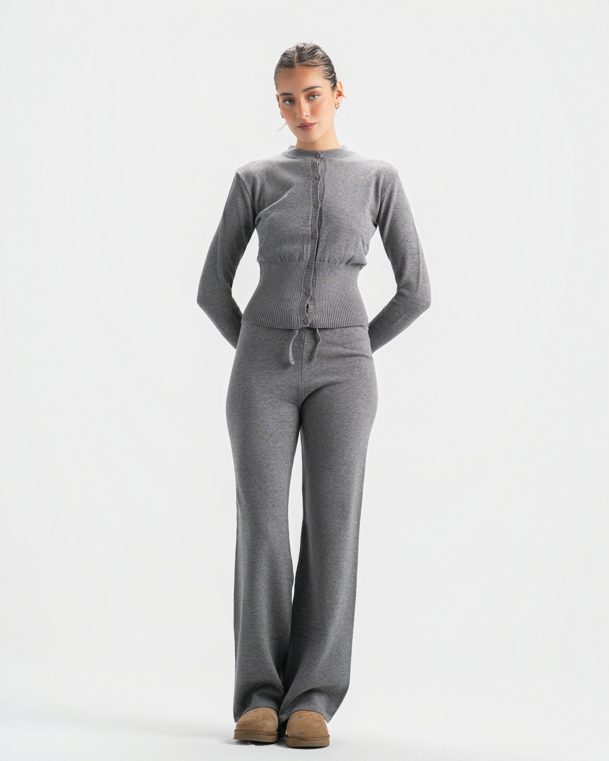 Introducing The Sculpt Knit Set — a refined pairing of elegance and ease. Crafted from our signature ultra-soft, high-quality knit, this set delivers the perfect balance of comfort and contour. The body-sculpting cardigan cinches the waist and enhances your shape, while the long-line pants elongate the legs with a smooth, tailored fit. Effortlessly chic and endlessly wearable, it’s knitwear that moves with you — and makes a statement without trying.