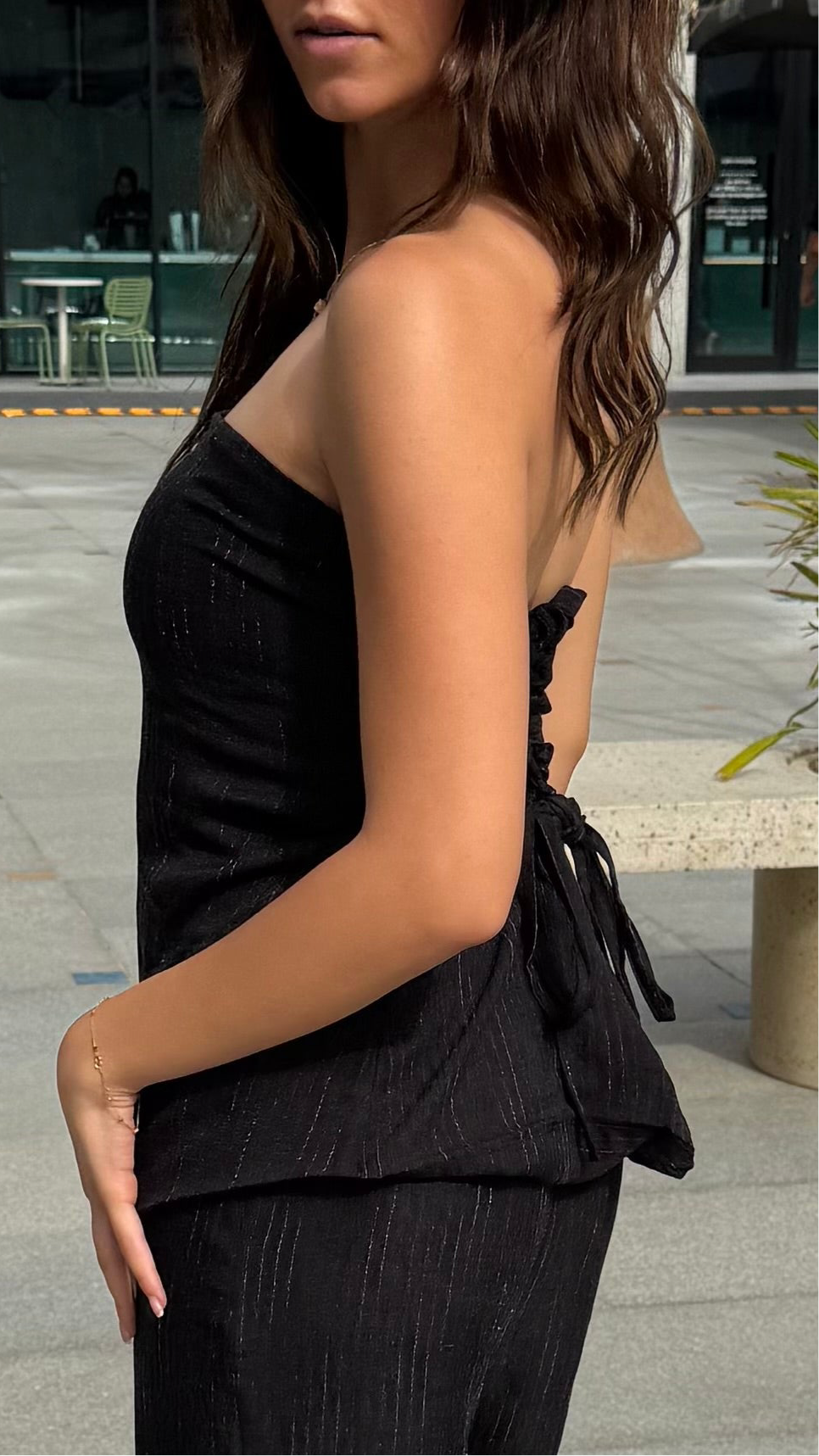 This adjustable linen set made from light breathable fabric is designed to compliment your body in the most flattering way.